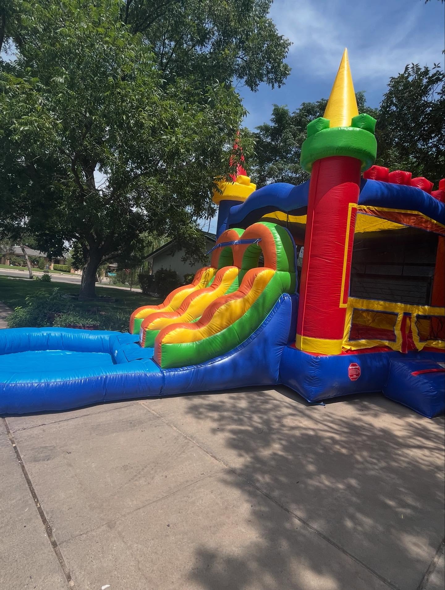 Brighten up any event with the Rainbow Castle Splash. This unit is built specifically for water use, with a high-friction slide and a built-in pool at the base to keep everyone cool.