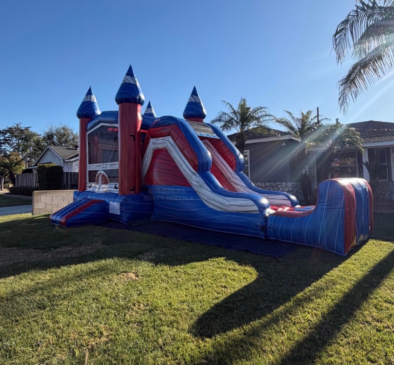 Take your party to the next level with our exciting bounce house combo rentals! These all-in-one inflatables combine a spacious jumping area with fun features like slides, climbing walls, and basketball hoops—giving kids multiple ways to play and stay entertained for hours. Perfect for birthdays, school events, and backyard parties, our combo units are designed with vibrant themes and built from high-quality, durable materials. Safety is always a priority, with enclosed netting, cushioned landings, and secure structures for worry-free fun. Whether you choose a dry combo or a water slide combo for those hot days, our units deliver nonstop excitement for all ages. We handle delivery, setup, and pickup so you can relax and enjoy the celebration. Book today and give your event the ultimate upgrade!
