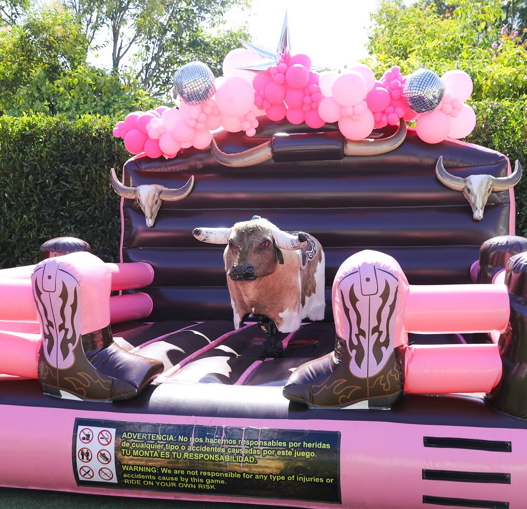 The ultimate "Party Bull" for those who want to ride in style! This unit features striking pink accents and oversized inflatable cowboy boots that make it a perfect fit for bachelorette parties, "Sweet 16" celebrations, or themed "Space Cowboy" events. It’s a high-energy, fashionable take on the classic rodeo.