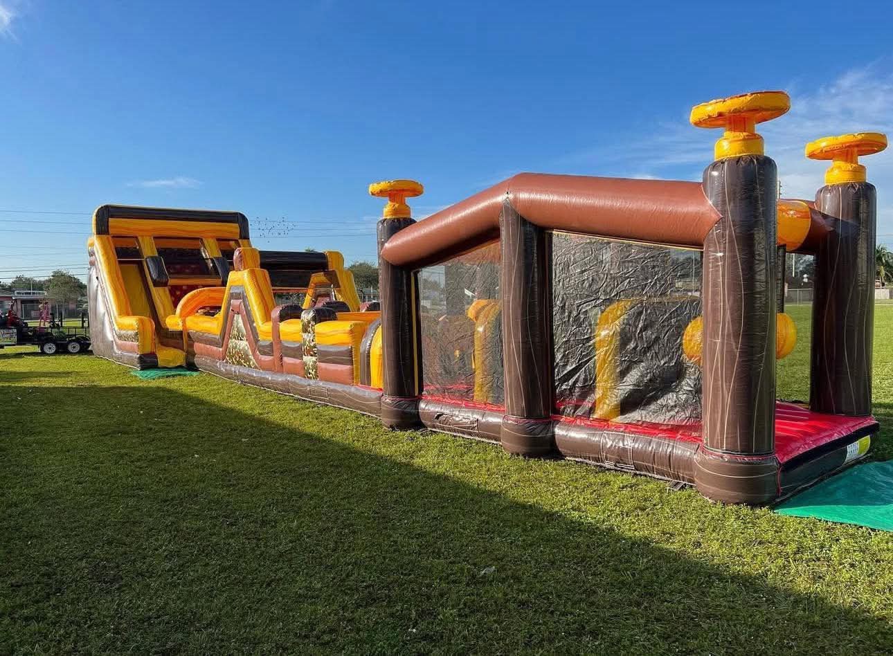 Take a walk on the wild side! This massive jungle-themed course is decorated with inflatable palm trees and tropical colors. As one of the longer units, it offers an extended racing experience including multiple obstacle sections and a tall, "canopy" slide at the end.