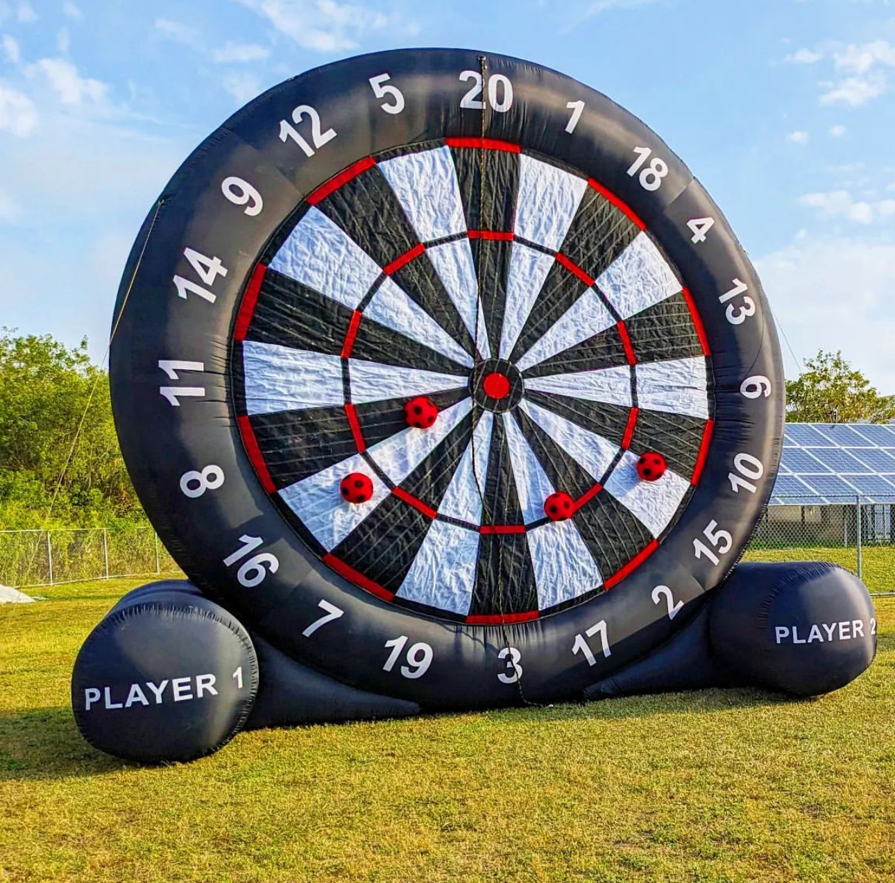 A massive, inflatable twist on the classic pub game! This giant 12-foot dartboard features a fuzzy "sticky" surface designed for velcro-wrapped soccer balls. Whether you're playing a high-score competition or a game of "Around the World," this unit is a major eye-catcher. It’s safe, easy to play, and a great way to engage both kids and adults at any event.